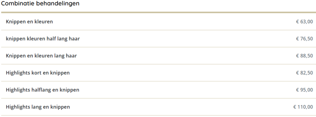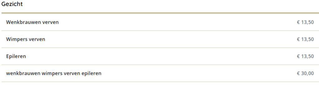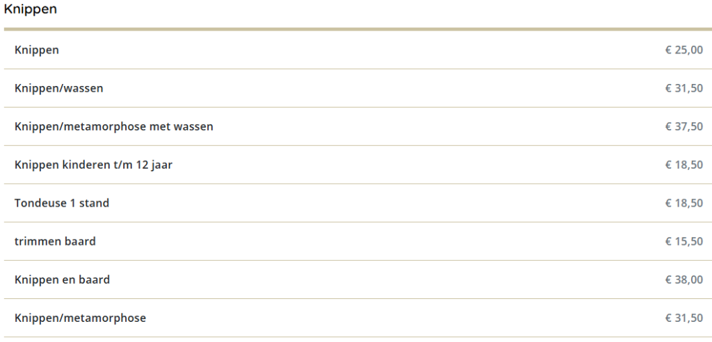 Prijslijst